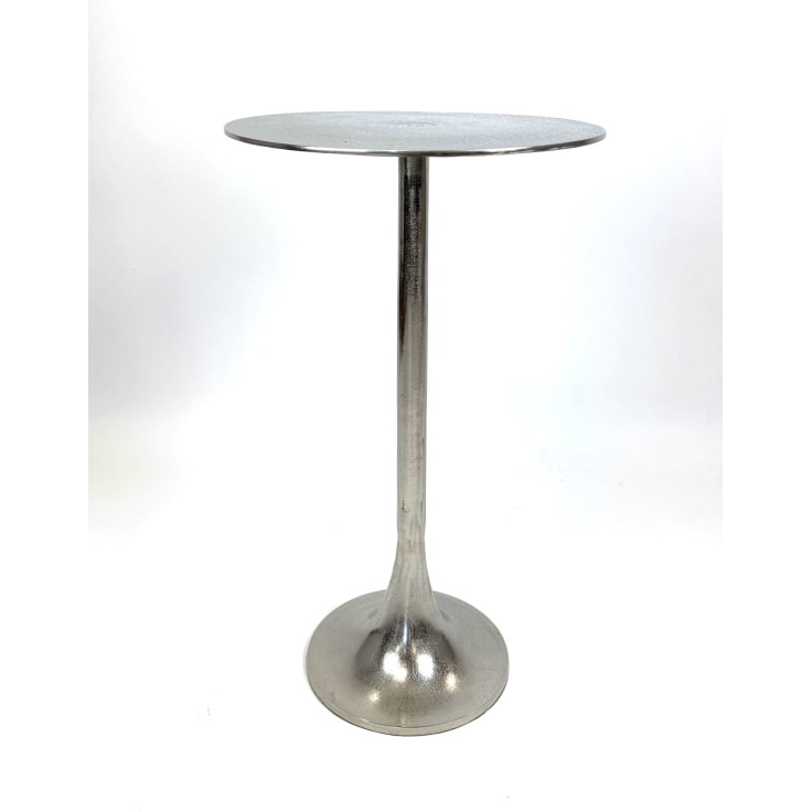 Have you ever seen anything like this aluminium raw nickel silver round side table?  I haven’t but I LOVE it!  It’s wonderfully different but stylish and the colour is a Wow!  Perfectly silver but not too shiny, the finish is wonderfully aged with dimples and irregularities, no two are exactly the same. The quality is superb.  Made of aluminium that has been cleverly finished.  Create a statement in your home whatever your scheme is, as this will work in any home.