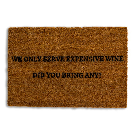Welcome friends and family! It adds a practical and playful touch to your entrance, while keeping dirt and debris at bay with natural coir. The coir has “We Only Serve Expensive Wine – Did You Bring Any?” printed on it. PVC backing.