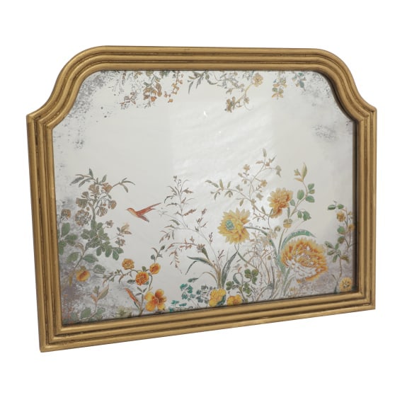 Antiqued Gold-Framed Overmantle Botanical Mirror