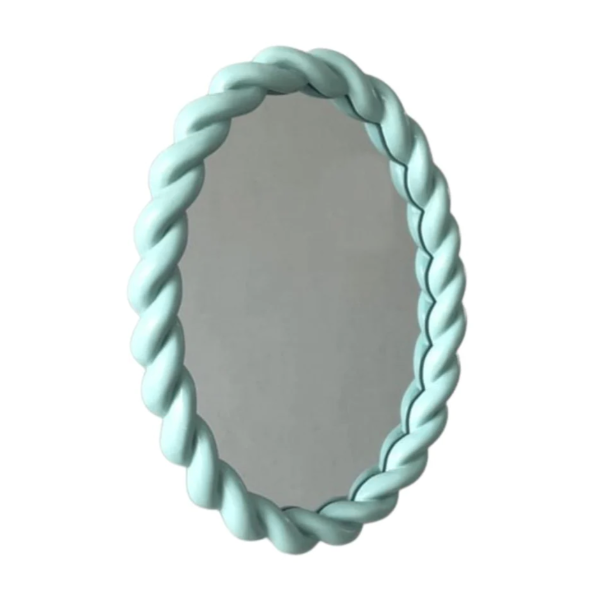 Inject some colour and simple fun into your home with this oval mint wall mirror. The aqua mint is clean and is accentuated by the simple rope design of the round frame. Tis mirror can be hung portrait or landscape, depending on your needs.