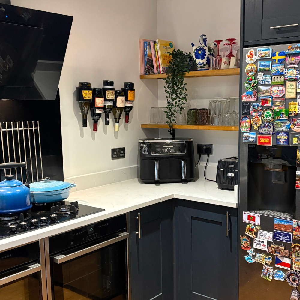 This vintage styled wall mounted wine rack holds 5 bottles vertically. The bottles can be held bottoms up or not, either way they will be very secure and decorative too! The metal rack is black powder coated and has vintage style wine labels on the outside of each bottle holder to give a lovely authentic feel. An alternative use could be as a flower vase? Supremely lightweight yet safe and sturdy this really is a super choice to store your wine with style!